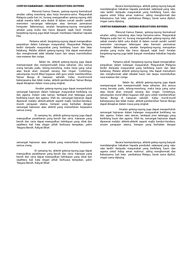 Contoh Karangan Faedah Gotong Royong Pdf